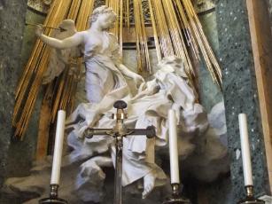 自画像の解説に画家の紹介文と代表作と思われる作品が掲示してありました。↓の「聖女テレサの法悦」が紹介されていたのがベルニーニ。ベルニーニは彫刻家とばかり思っていたので、「絵を描いていたのですか〜」とベルニーニの「自画像」に向かって話しかけてしまいました。