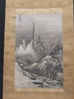 「本物の雪舟の掛け軸!!」です。冬景には雪の坂道を上る人も描かれていて、静だけではなく動もあるのだなぁと、思ったりもしました。