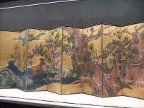 様々な陶磁器、刀剣、武具などなど…重要文化財など多数あり…の中を自分の趣味のままに観ながら先に進むと本館リニューアル記念特別公開狩野永徳の「檜図屏風」(展示期間 1月2日〜1月16日)。ここは、何故かさほど人垣ができておらず、人が途切れた一瞬がありました。教科書で習った狩野派ですよ〜!なんだかドキドキ。(笑)
