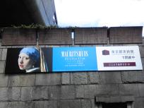 最前列は、「立ち止まらないでください。」と声を上げ続ける係員さんに従い、少しづつ動いての鑑賞。あっという間に少女の前を通り過ぎてしまいました。一応、並んで最前列に到達した人は、通り過ぎた後、最前列の人の後ろから、今度は立ち止まって見られるので、そちらに移動しましたが、2列目、3列目に陣取った方々、根が生えたように見入っていて、人垣は4重、5重にもなっていました。そこで、前に人の頭越しにしばらく耳飾りの少女に話しかけて、納得。その場を離れました。
