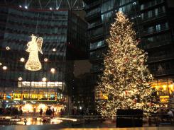 ソニーセンターの中の吹き抜けを利用してのクリスマスマーケットなので、規模的には大きくない。というか小規模の部類かな。お店も多くないけれど、建物の中なので、寒さをあまり感じないし、吹き抜けを利用してのクリスマスツリーと、天使のイルミネーションはキラキラしていい感じ。