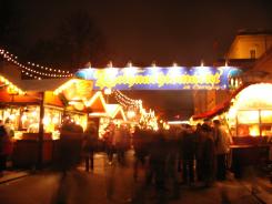 道を挟んだところから、周囲の様子とクリスマスマーケットの全景を撮影しましょう。