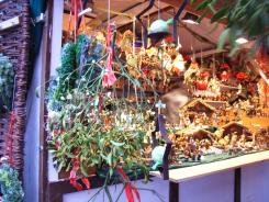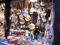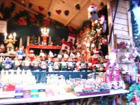 前夜のケルンのクリスマスマーケットでは、訪れたのが遅かったため、クリスマスオーナメントを売る店はほとんど営業を終えていたので、このリューデスハイムのクリスマスマーケットで初めて、いろいろな屋台のウィンドウ(?)ショッピングができました。
