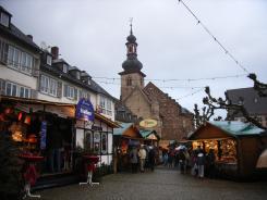 クリスマスマーケットの屋台が出ている、あちこちの路地に入りってぐるっと回り道をしたりしつつ、教会を目指しています。