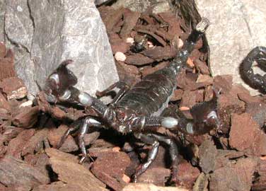 学名:Heterometrus cynaeus 分類:サソリ目 コガネサソリ科 分布:東南アジア |