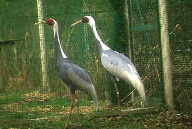 学名:Grus vipio 英名:White-naped Crane 分類:ツル目 ツル科 分布:中国東北部、シベリア東南部、モンゴル 繁殖、日本、中国東南部、韓国で越冬 |