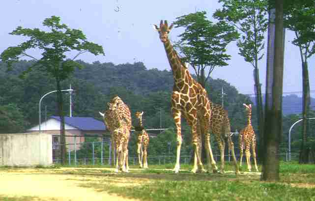 キリンは赤ちゃんを立ったまま生む。産み落とされた子キリンの上に母親の体から、羊水がバケツをひっくり返したように、たたきつけられる。早く起き上がりなさいという最初の合図だ。 母親は子キリンの体をなめ、大きな体で不器用そうに、子キリンの体や四肢を前肢でそっと踏む。初めて見たとき、潰されるのではと、ひやひやした。そうではなかった。生まれた子供の体に刺激を与えて早く立ちあがることを促しているのだ。 アフリカにすむキリンの周りには、子キリンの天敵となる肉食獣が潜んでいる。早く立ち上がり、親について歩くことがサバイバルへの第一条件だ。動物園のキリン舎の中に、生息地のアフリカを垣間見た思いがする。 |