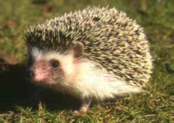 ヨーロッパの昔話にはハリネズミが、よく登場します。イギリスではロンドンの近くでさえ庭にハリネズミがでてくるそうです。「母がお皿にミルクをいれて、ハリネズミにあげているわ。」英会話の先生だったジャネットさんの話がとてもうらやましく思えました。日本にもハリネズミがすんでいたなら楽しいのに。 ところが、神奈川県や静岡県の一部にハリネズミがすんでいることが、わかってきました。残念ながらペットが逃げ出したり捨てられたものが増えたものだそうです。外国の動物がすみついてしまうと、もとからあった自然のしくみを変えてしまい、今まですんでいた生物に悪い影響を与えかねません。とても悲しいことです。 ヨーロッパからアジアにかけて広くすんでいるハリネズミは、以前は1種とされていましたが、現在では3種類に分けられています。「ロンドンにいるのとは色がぜんぜん違う。」動物園で飼われていたハリネズミを見たジャネットさんの言葉が気になりました。調べた結果、全体が茶色いヨーロッパハリネズミではなく、おなかの色が白い東アジア産のマンシュウハリネズミでした。 |