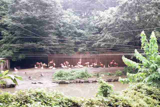 足元にはハワイガンが寄ってくる。 「ヒュヒュー、ヒュヒュー」と口笛のような鳴き声は、2種類のリュウキュウガモ。特にカザリリュウキュウガモはオーストラリアのクイーンズランド州より贈られた親善動物。ようやく日本で最初の繁殖に成功し、大家族になってきた。 | ![]() |