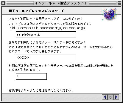 [電子メールアカウント] には、アカウント名@mail.aya.or.jp を [電子メールホスト] には mail.aya.or.jpを入力してください。