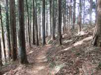 | 薬師堂に向かって左手に進んで、程なくすると登山道になります。今回は、行きは薬師堂コースをとります。 落ち葉を踏みしめながらの陽だまりハイキング。葉の落ちた木立ちの隙間から、秩父の山々が望めます。 |